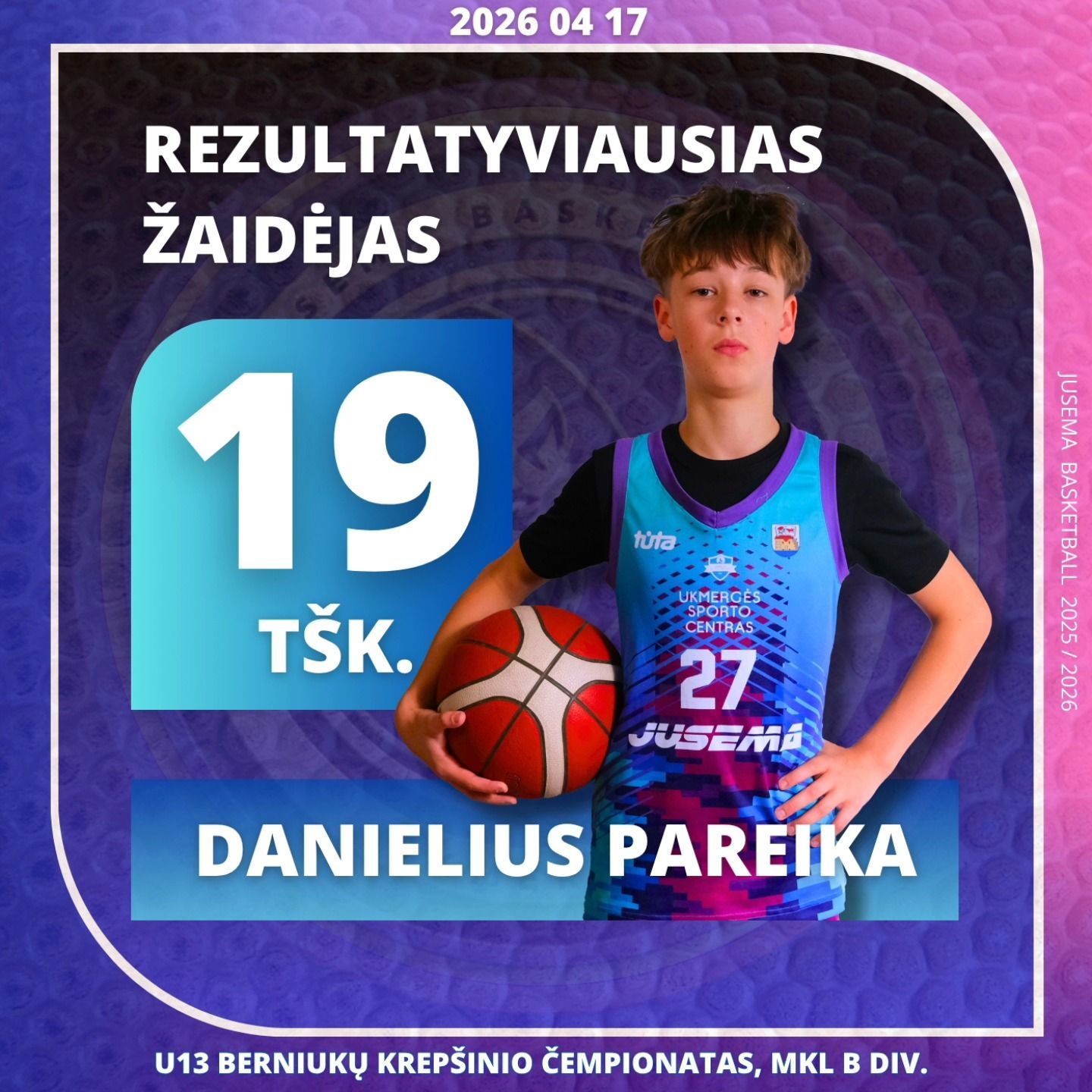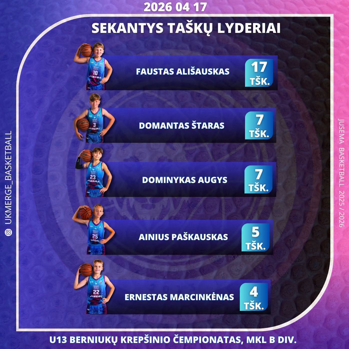 Baigėsi 4 mėnesius vykusios 2025–2026 m. Ukmergės rajono vyrų krepšinio pirmenybės. Po didžiojo ir mažojo finalų komandos išsidėstė taip: 1. ,,DEVYNETAI“ 2. ,,VIENYBĖ“ 3. ,,MOKAS“ 4. ,,TRAUPIS“ Varžybų rezultatai: Dėl I vietos kovojo: ,,DEVYNETAI“ – ,,VIENYBĖ“, rezultatu 86 – 83 pergalę džiaugėsi ir ČEMPIONAIS TAPO ,,DEVYNETAI“. Rezultatyviausi žaidėjai: ,,DEVYNETAI – Aivaras Liogė – 16 taškų ir 17 naudingumo balų, Domantas Gečys – 13 taškų ir 13 naudingumo balų. ,,VIENYBĖ“ – Jonas Gineika – 37 taškai ir 25 naudingumo balai, Danielius Razumas – 16 taškų ir 14 naudingumo balų. Dėl III vietos kovojo: ,,MOKAS“ – ,,TRAUPIS“, 91 – 88 pergalę džiaugėsi ir III vietą laimėjo ,,MOKAS“ komanda. Rezultatyviausi žaidėjai: ,,MOKAS“ – Dominykas Želnys įmetė 38 taškus ir surinko 21 naudingumo balą, Tomas Petronis įmetė 16 taškų ir surinko 29 naudingumo balus. ,,Traupis“ – Edgaras Šlaitas – 23 taškai ir 13 naudingumo balų, Darius Kadžionis – 22 taškai ir 31 naudingumo balas. Tai buvo finalas, vertas istorijos puslapių – kupinas kovos, emocijų, garso. Tiek didžiajame, tiek mažajame finaluose intriga išsilaikė iki varžybų pabaigos, nugalėtojai išaiškėjoi tik paskutinėmis sekundėmis. Geriausiais komandos žaidėjais pripažinti: AIVARAS LIOGĖ - ,,DEVYNETAI“ JONAS GINEIKA - ,,VIENYBĖ“ ARNAS BATAKYS - ,,MOKAS“ VYTAUTAS PELECKAS - ,,TRAUPIS“ Absoliučiai geriausiu pirmenybių žaidėju pripažintas – AIVARAS LIOGĖ (DEVYNETAI). Į simbolinį penketuką pateko žaidėjai – AIVARAS LIOGĖ (Devynetai), DOMANTAS GEČYS (Devynetai), NIDIJUS SKAPAS (Vienybė), DOMINYKAS ŽELNYS (Mokas), DOMINYKAS KIELA (Traupis). Finalinio ketverto geriausias žaidėjas ir simbolinio penketuko žaidėjai apdovanoti specialiais prizais. Visos finalinio ketverto komandos apdovanotos taurėmis ir medaliais . Nugalėtojus sveikino ir apdovanojo Ukmergės sporto centro direktorius Vitalijus Martikonis. SVEIKINAME KOMANDAS