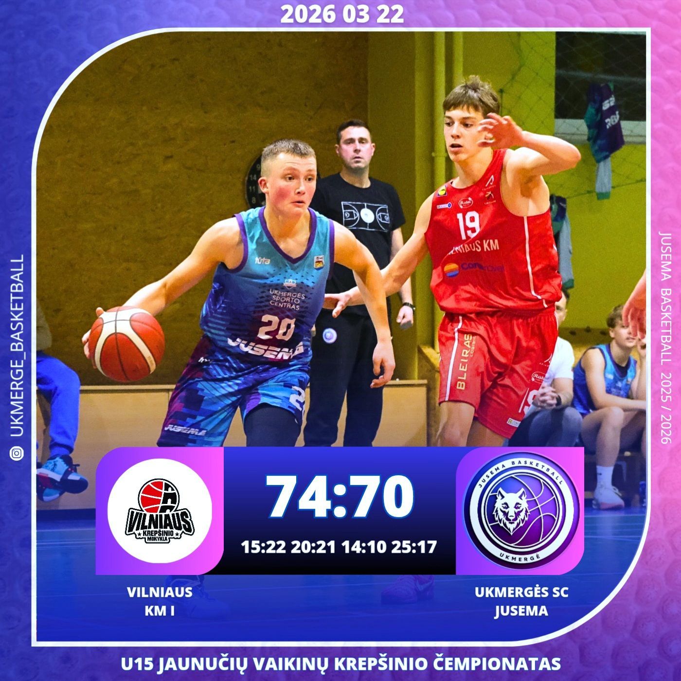 Šį kartą namuose priėmėme stipriausią ir vienvaldę čempionato lyderę – V. Knašiaus II‑HiPP NUKAS LIETUVA komandą. Rungtynės turėjo ir įdomų akcentą – abiejų ekipų vyr. treneriai Vaidotas Pečiukas ir Karolis Chadatavičius kartu dirba U15 jaunimo kartos trenerių štabe, tačiau šį kartą atsidūrė skirtingose barikadų pusėse.